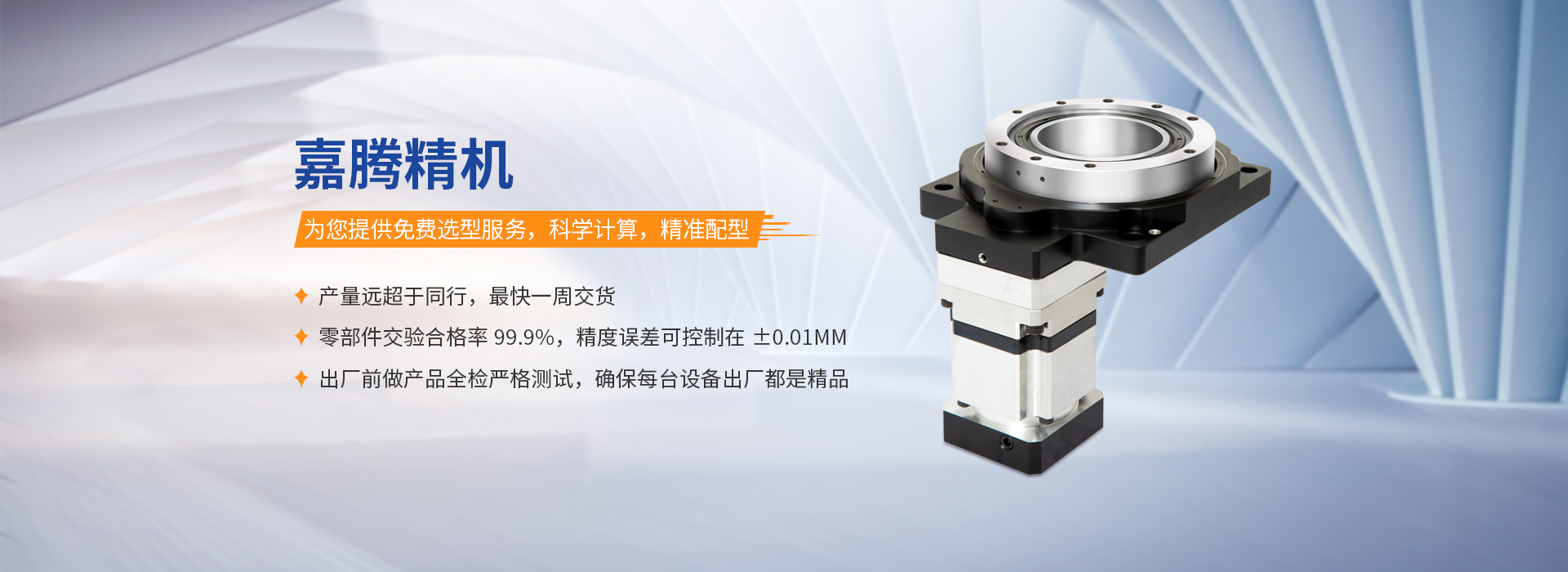 嘉腾首页 凸轮分割器 中空旋转平台 应用案例 资料下载 嘉腾简介 嘉腾动态 工厂实力 联系我们